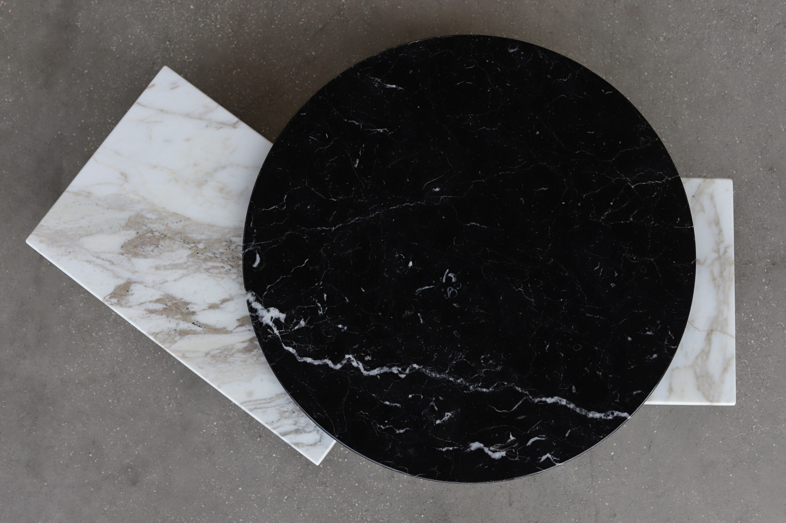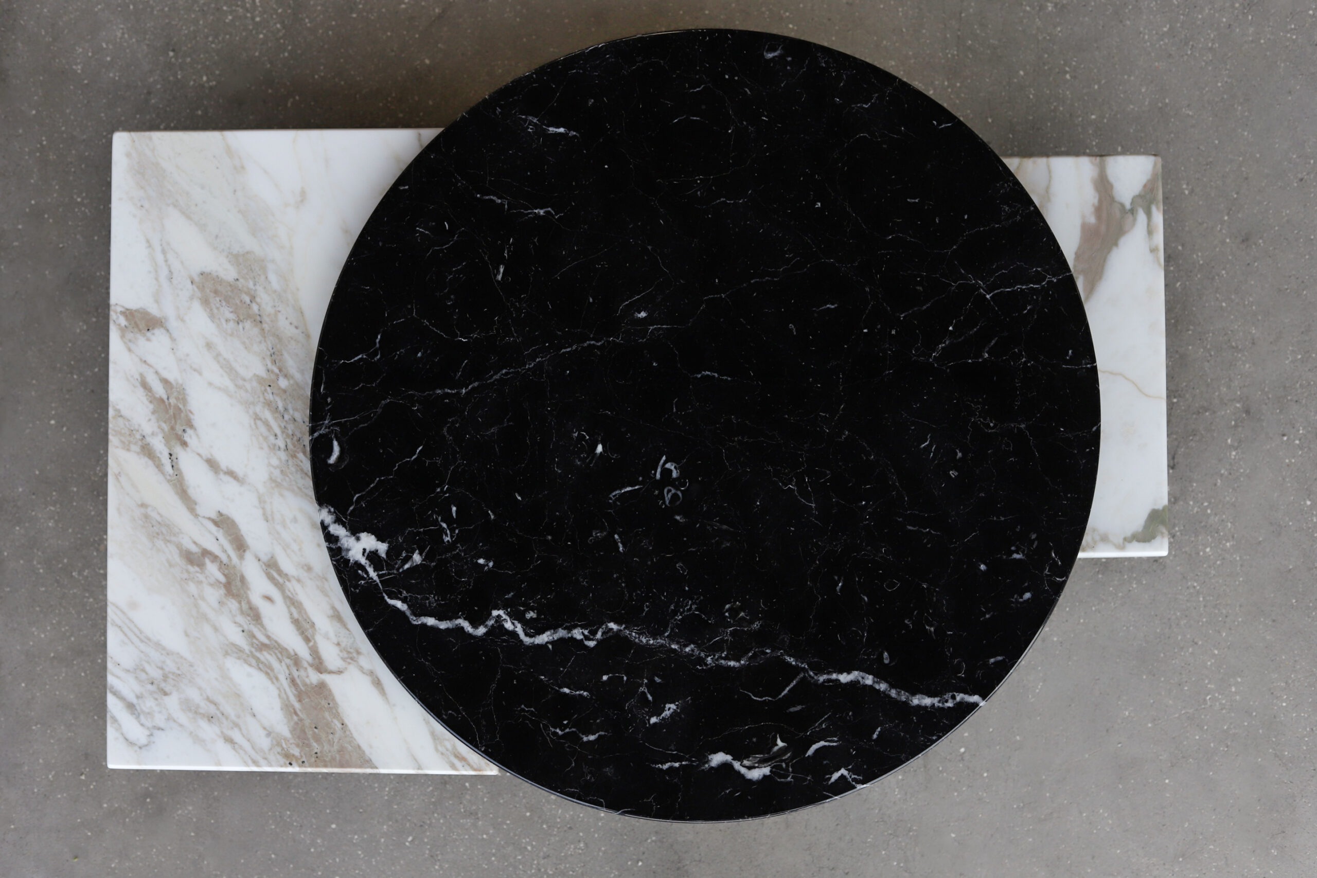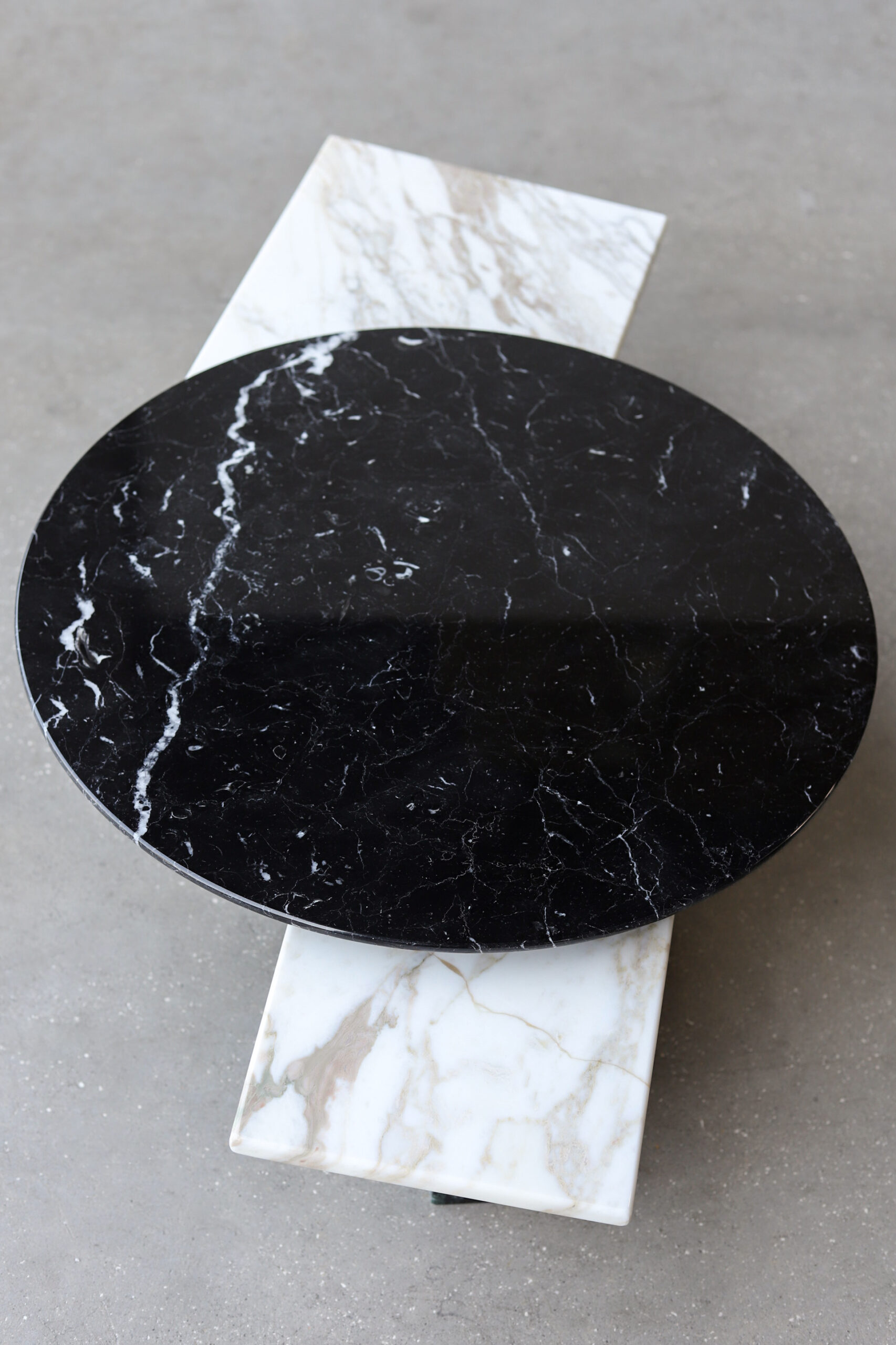 this particular low table is marked by a subtle beauty emphasized by the smoothness of its contemporary lines. tracing the pedestal base and the top’s irregular profile. The charm of the marble’s veining is further enhanced by the diverse rotatable tops that make the table vastly versatile.